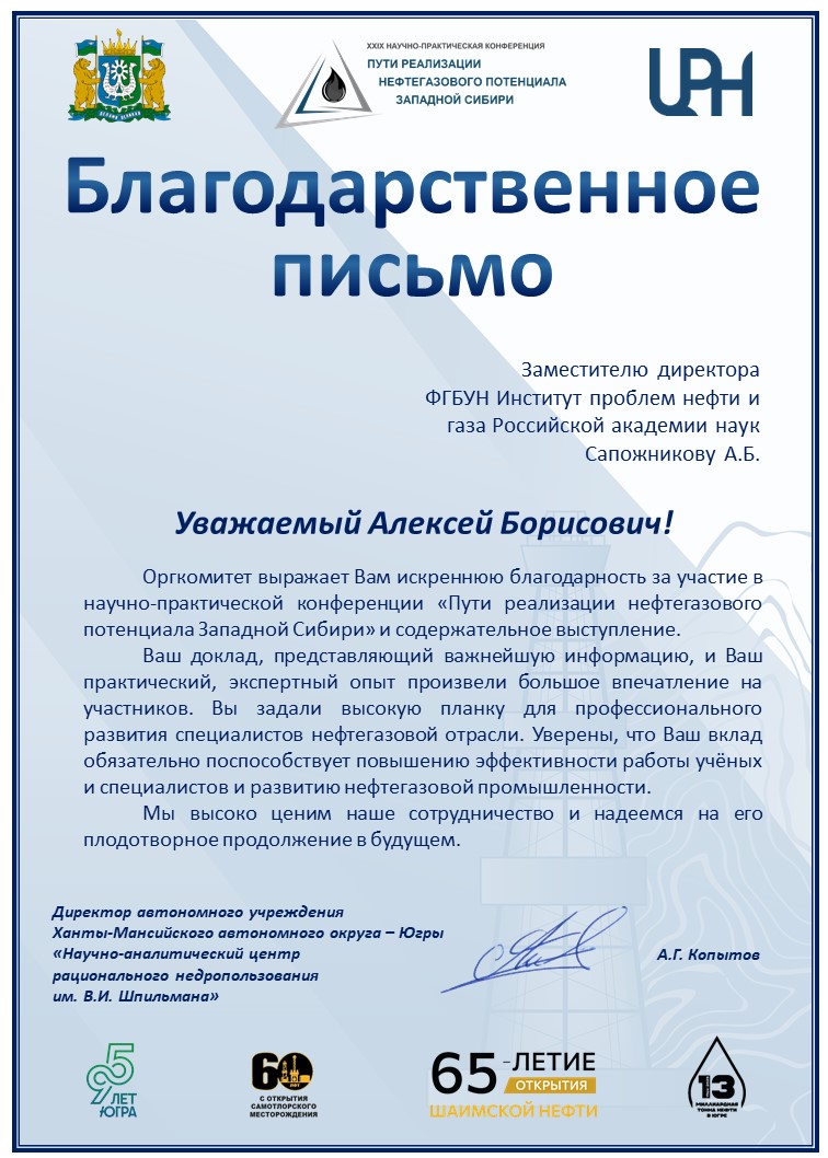 В этом значимом для отрасли мероприятии принял участие заместитель директора ИПНГ РАН по внедрению и взаимодействию с промышленностью Алексей Борисович Сапожников.